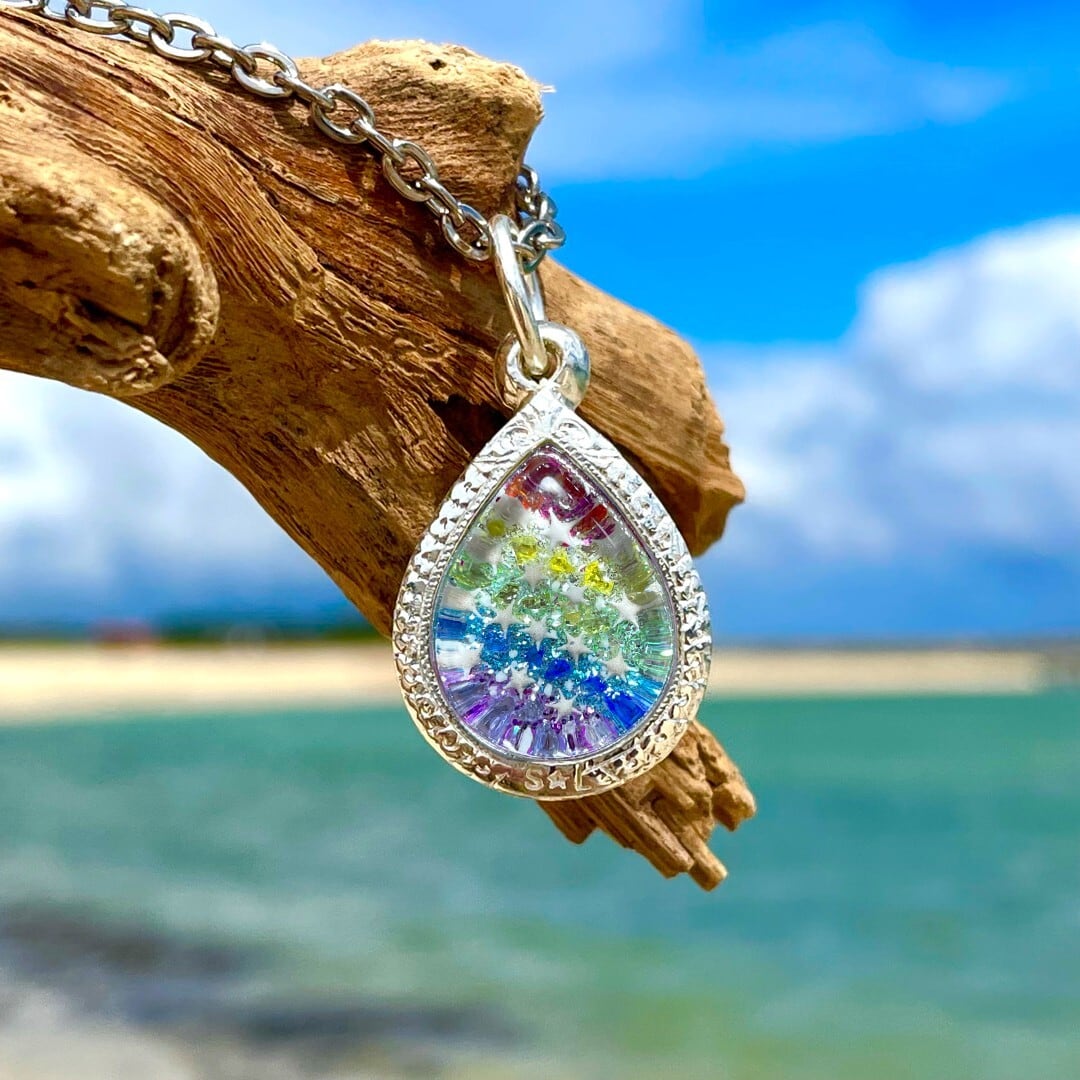 ※ストーンの中には災害や病気、ケガなどから守ってくれるといわれている、お清めされたお塩が入っているので、ネックレスとして身に付けられる肌身離さずのお守りにもなります。